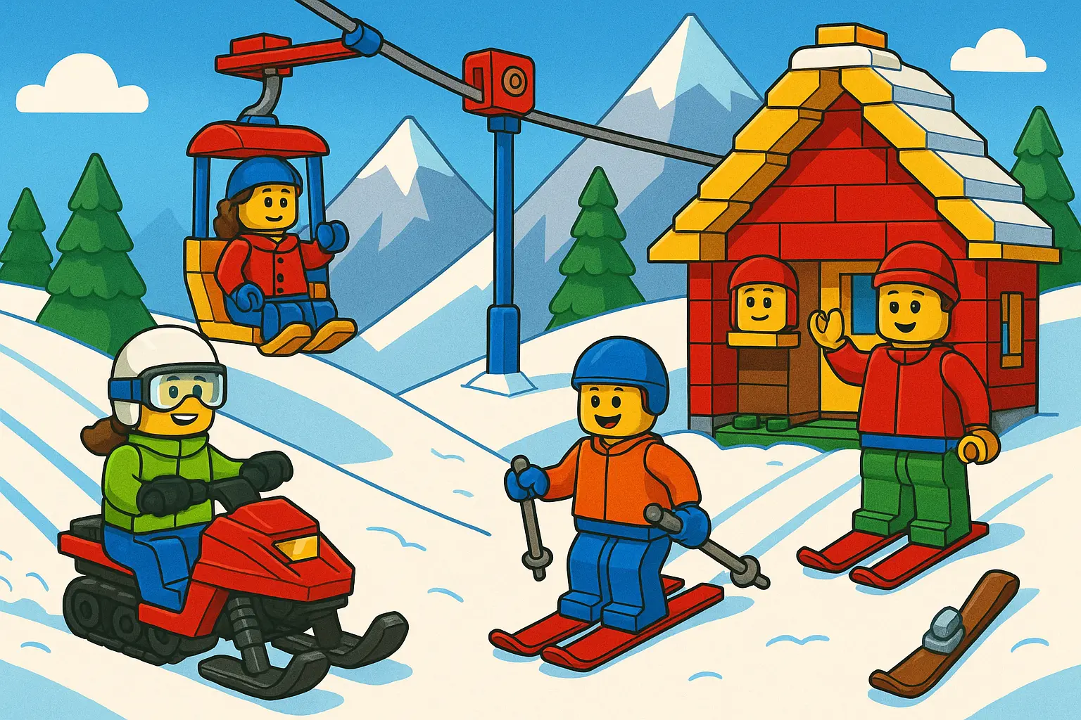 Gemeinsam entsteht ein kleines, lebendiges Skigebiet voller Ideen – mit Gondeln, Pisten, Bergrestaurants, Fahrzeugen und Figuren, die spannende Winterabenteuer erleben!