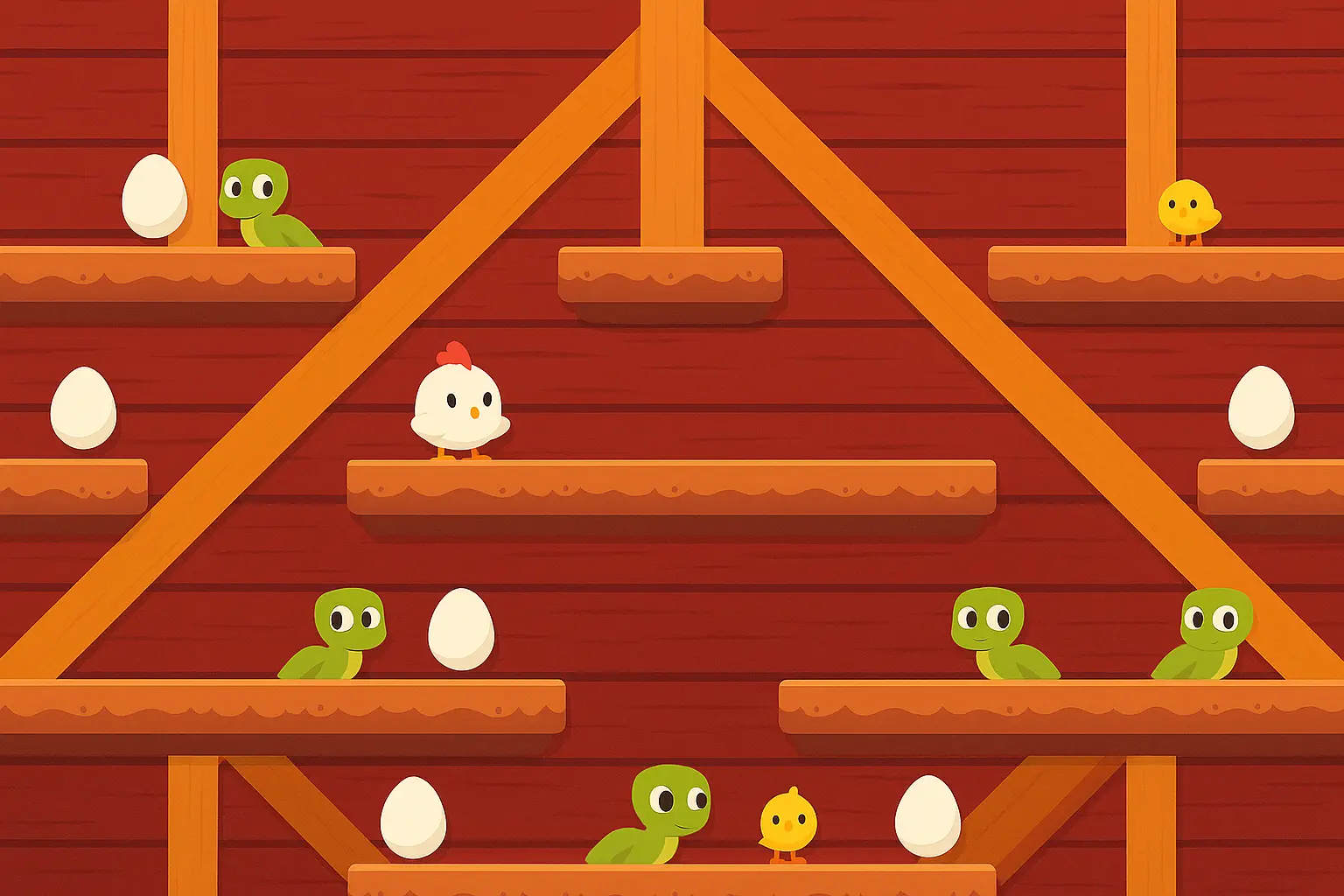 In diesem Kurs programmierst du dein eigenes spannendes Spiel mit Scratch. Du steuerst ein Huhn, das sich durch den Stall bewegt, Eier einsammelt und sie sicher ausbrütet. Aber Vorsicht – überall lauern gefährliche Schlangen, denen du geschickt ausweichen musst!